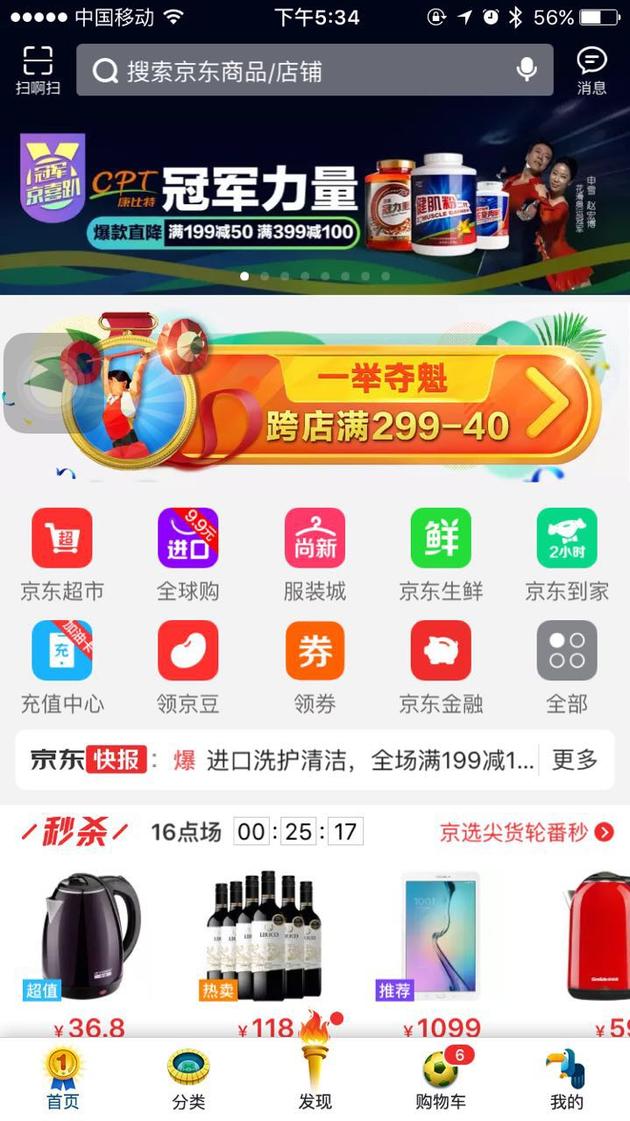 京東 京東的整套UI都沒有明顯的奧運標(biāo)識,可火炬和足球場館等卡通形象,又很直接的向你傳達(dá)了奧運的氣氛。
