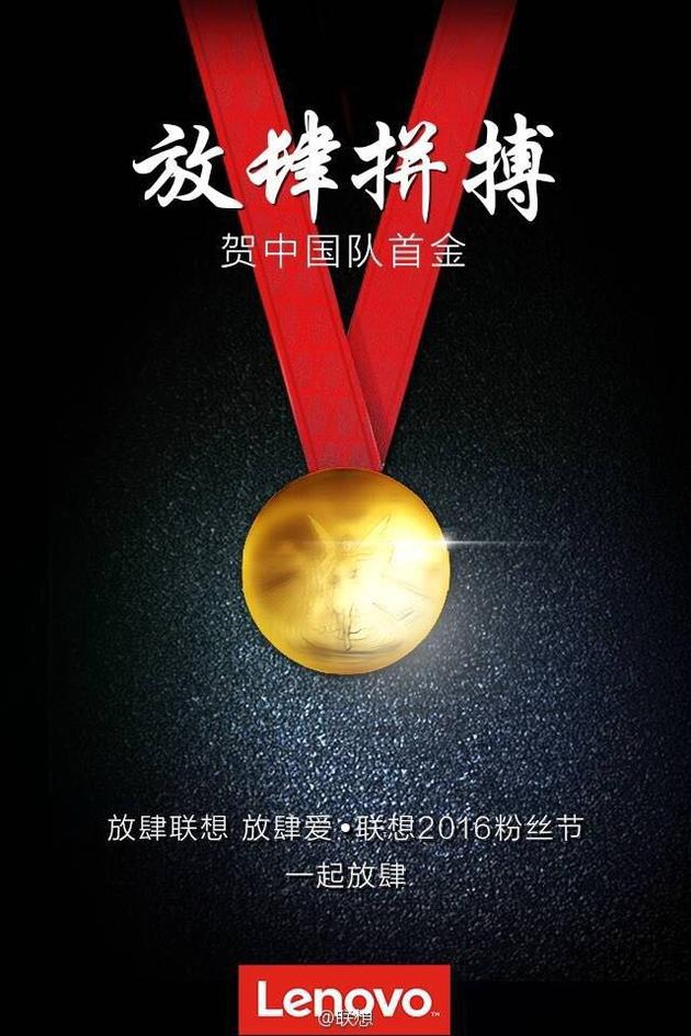 聯(lián)想 中國對奪得首金之后,聯(lián)想官方微博就放了這張圖,文案“放肆拼搏”很容易讓人聯(lián)想到正在比賽的運動員,同時放肆二字又跟聯(lián)想近期的活動相呼應(yīng)。