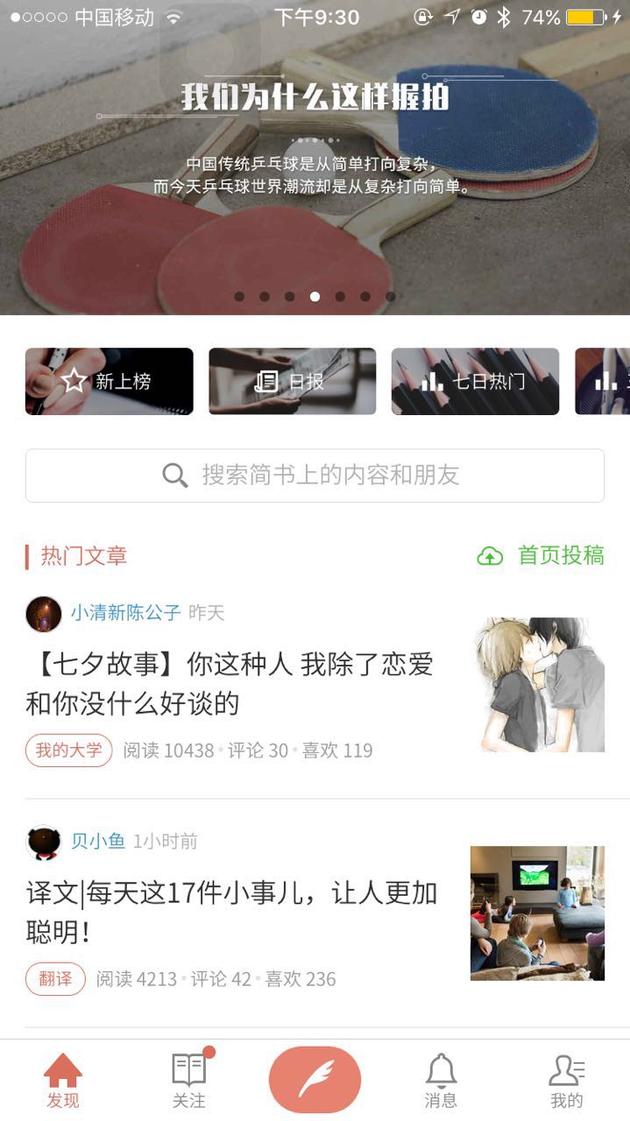 簡書 走文藝小清新范兒的簡書,把奧運元素揉進(jìn)了文章里,一篇《我們?yōu)槭裁催@樣握拍》也算是應(yīng)了奧運運動的主題。
