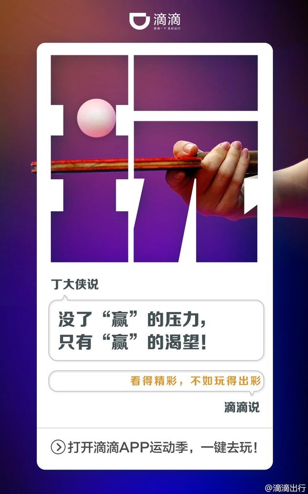 滴滴出行 滴滴出行,也是在文案上下功夫。用“沒了贏得壓力,只有贏的渴望”的文案去引出玩的主題,從而引導(dǎo)用戶去聯(lián)想“出行”的概念。